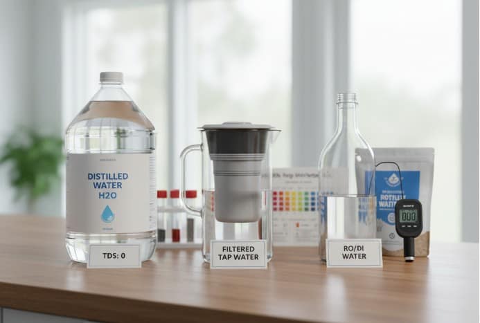 El agua destilada o algunas agua embotellada para ciclar acuario (muy blandas) pueden parecer cómodas, pero presentan el mismo problema que la ósmosis: falta de minerales. Esto significa que, aunque al principio puedan verse como una solución rápida para ciclar acuario, en realidad no ofrecen a las bacterias beneficiosas el entorno estable que necesitan.